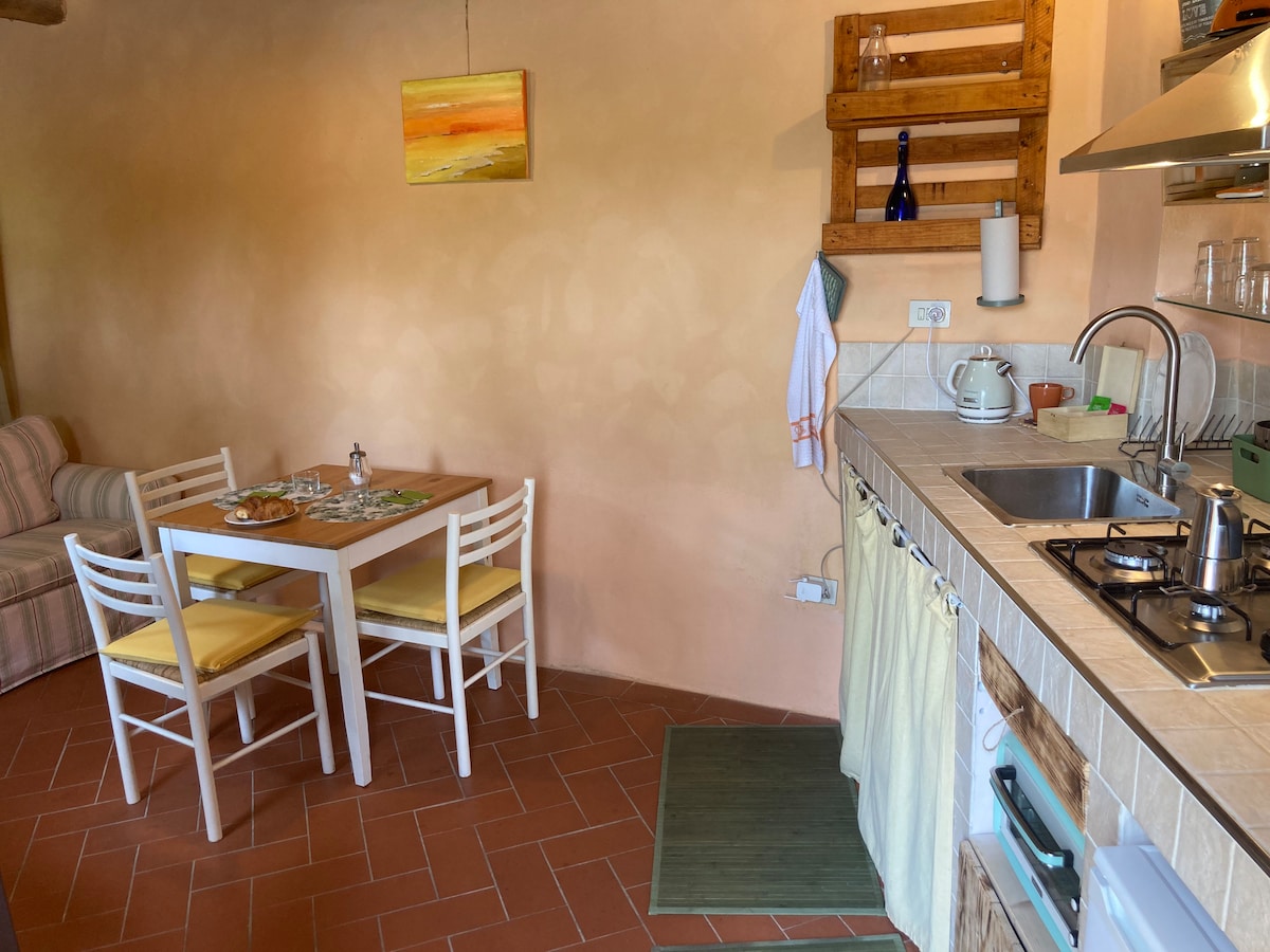 Stan je dio tipične toskanske seoske kuće uronjene u zelenilo. Potpuno nezavisna, sastoji se od potpuno opremljene kuhinje sa kaminom, dnevnog boravka sa TV-om i kaučem na razvlačenje, kupatila sa tušem i spavaće sobe sa bračnim krevetom.