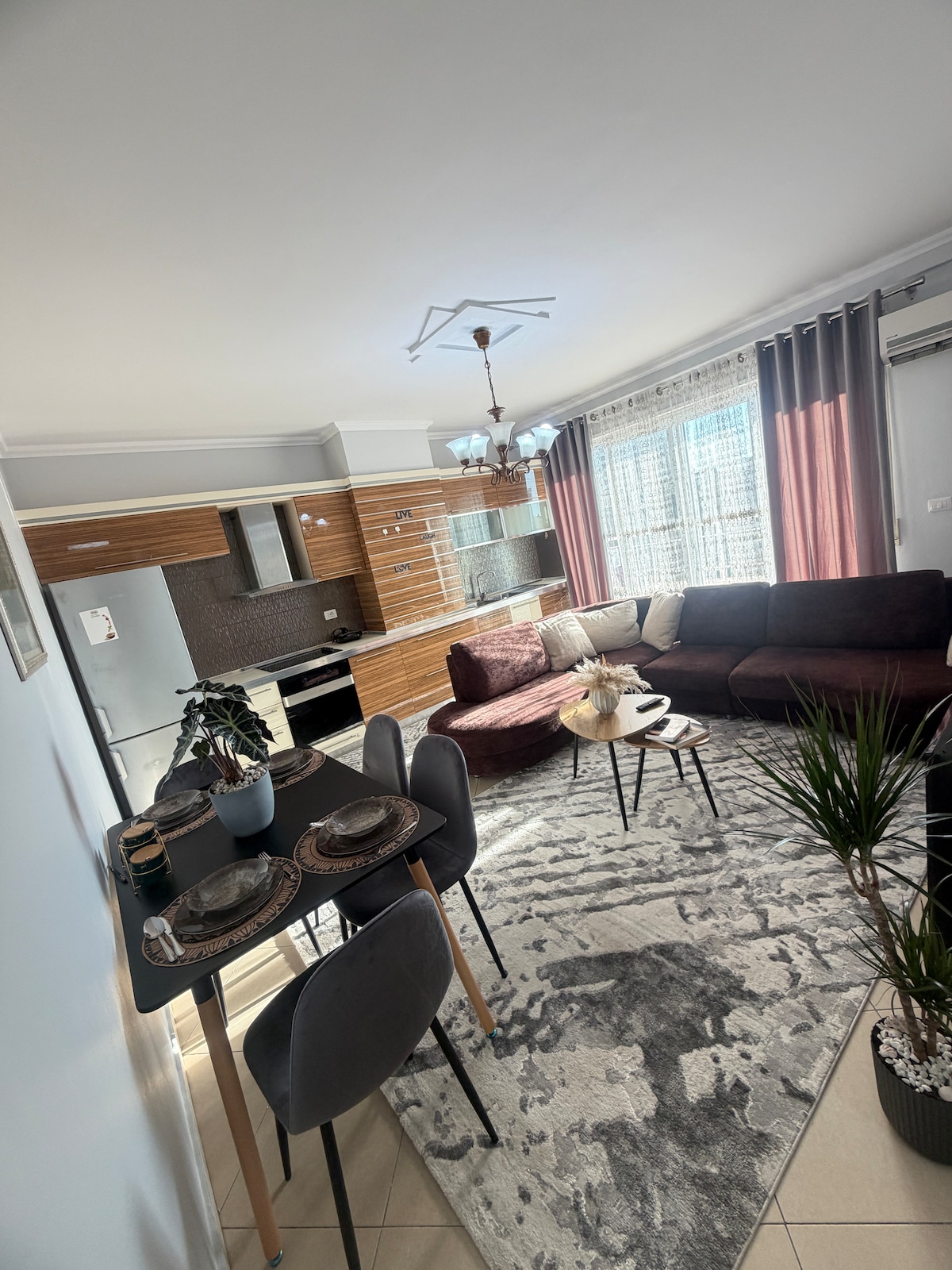 Zakoračite u naš elegantni dvosobni kondominijum smješten u užurbanom srcu Tirane, koji se može pohvaliti neusporedivim pogledom na grad. Ovo elegantno utočište besprekorno kombinuje luksuz i udobnost doma, obećavajući nezaboravan boravak. Stakleni zidovi od poda do plafona otkrivaju neprekidne vizure, od blistavog izlaska sunca do očaravajućih gradskih svjetala, slikajući svaki trenutak zadivljujućom ljepotom. Bilo da se opuštate u dnevnoj sobi ili istražujete živopisni grad, ovo utočište pruža nezaboravno iskustvo.