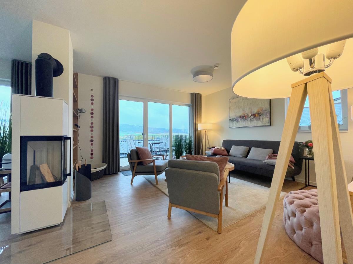 106 kvadratnih metara čistog blaženstva na fantastičnoj lokaciji na padini sa neodoljivim pogledom na jezero i planine! Potpuno masivni porodični kreveti u obje spavaće sobe omogućavaju da jedna ili čak dvije cijele porodice spavaju opuštenije. Prostrana prostorija za igre direktno se nalazi pored krovne terase sa očaravajućim pogledom na jezero. Smješten direktno u prvom redu, možete lako doći do svih znamenitosti i plaža oko Dimelzija.