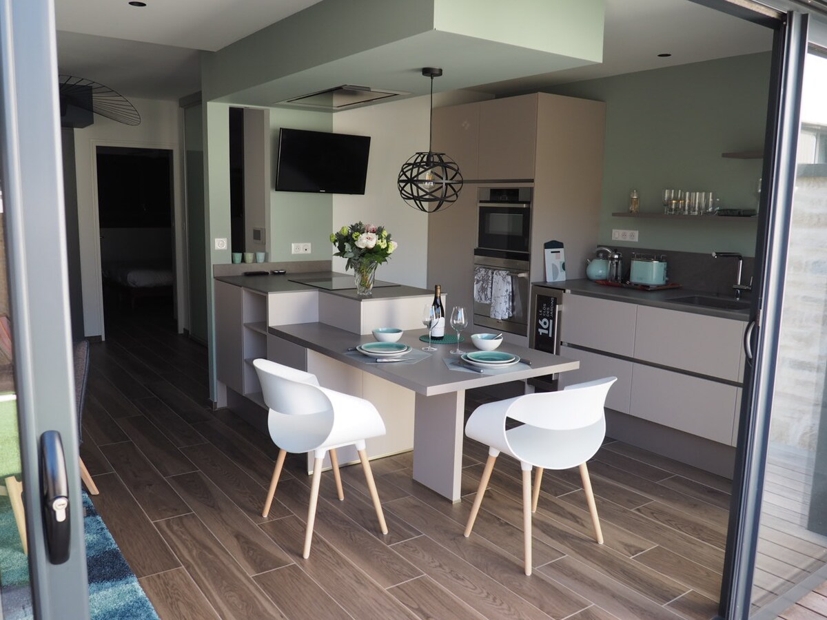 Naše novo renovirano mesto površine 33m ² ima klima-uređaj i nalazi se na kratkoj šetnji od šarmantnog, istorijskog centra Dižona. U zasebnoj maloj zgradi iza naše kuće imaćete svoju dnevnu sobu/kuhinju, zasebnu spavaću sobu i kupatilo. Ispred kuće je besplatan javni parking u ulici. Bićete odmah pored Palais des Congrčs i Auditorium, kao i kratka vožnja tramvajem do železničke stanice, univerziteta i bolnice. U blizini su supermarketi i druge prodavnice. Nous saloni également français.