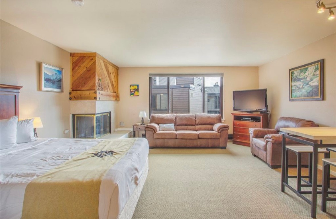 The biggest studio in the Gateway Bldg. at 650 sqft. It 's a short walk to River Run Village or Mountain House. Plivajte u bazenu, upijte hidromasažnu kadu, skočite u kafić preko puta hodnika na doručak ili ručak ili se jednostavno opustite u predimenzioniranom studio apartmanu koji nudi plinski kamin, bračni krevet na sprat (4 osobe) i kauč na razvlačenje. Kuhinja ima mašinu za sudove, mikrotalasnu rernu, 2 indukcione ploče za kuvanje i toster. Praonica veša i teretana su odmah niz hodnik. Maksimalno šest osoba, parking za jedan automobil maks.