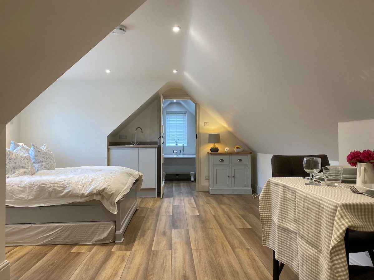 Prekrasan, potpuno novi aneks sa fantastičnim kupatilom u zadivljujućem selu koji se nalazi na šumi Alis Hol na granici Sari/ Hants i u blizini otmjenog Fanrhama. Objekat je nedavno renoviran i uključuje drvene podove, podno grijanje i besprekorno kupatilo. Vaš smještaj je dvostruki smještaj sa privatnim ulazom. Ima udoban bračni krevet, sto i stolice, frižider, čaj/ kafu, odličan tuš i miran spoljašnji prostor za opuštanje. Objekti za kuvanje nisu obezbeđeni.