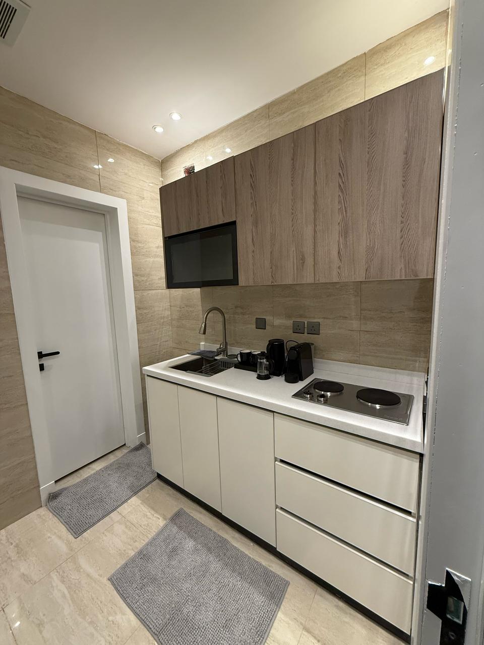 Tih i elegantan studio za samostalni boravak, koji se sastoji od glavnog kreveta, bočne sesije, pametnog TV-a, kao i kutka za kafu za pripremu kafe, čaja, čajnika, mikrotalasne pećnice i kupatila punog alata za kupanje, ovaj studio je strateški lociran na sjeveru Rijada i blizu je svih usluga i događaja, nema Wi-Fi Bulevar Rijad je udaljen 5 minuta Walnder Gunn 8 min , Aerodrom je udaljen 18 minuta