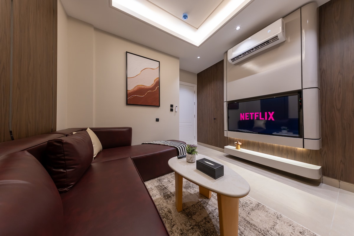 Otkrijte luksuz bez premca u četvrti SEAL 25 u Al Malki. Ovaj apartman od 70m² 1BR oduševljava se elegantnim dizajnom, salonom spremnim za Netflix, bračnim krevetom, potpuno opremljenom kuhinjom, vrhunskim posuđem i specijalizovanim alatima za kafu. Uživajte u pristupu teretani, baštama, prostoru za djecu i privatnom parkingu. Samo 8 minuta do Bulevara, 15 do aerodroma i 20 do centra grada. Mir, stil i lokacija - čeka vas savršen odmor u Rijadu.
