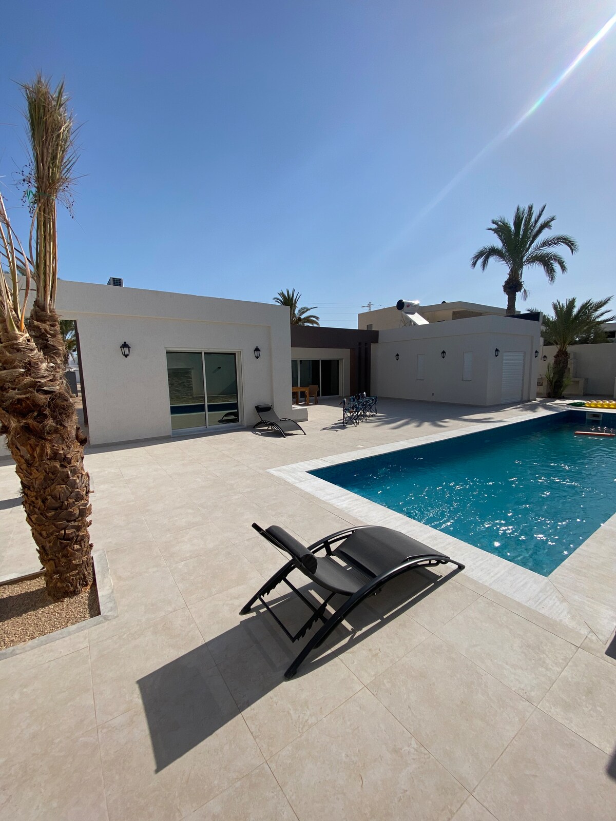 Dobro došli u našu neometanu vilu okrenutu prema jugu, na mirnoj lokaciji Ima veliki privatni bazen, bazen za veslanje, veliku dnevnu sobu, opremljenu kuhinju, pergolu za trenutke opuštanja, roštilj, udoban kutak... Društvene igre su dostupne za zabavu 200 m od džamije i automobilom: 2 min od supermarketa, 5 minuta od plaže i 15 minuta od centra Midna i Bourgo Malla Automobil je preporučljiv