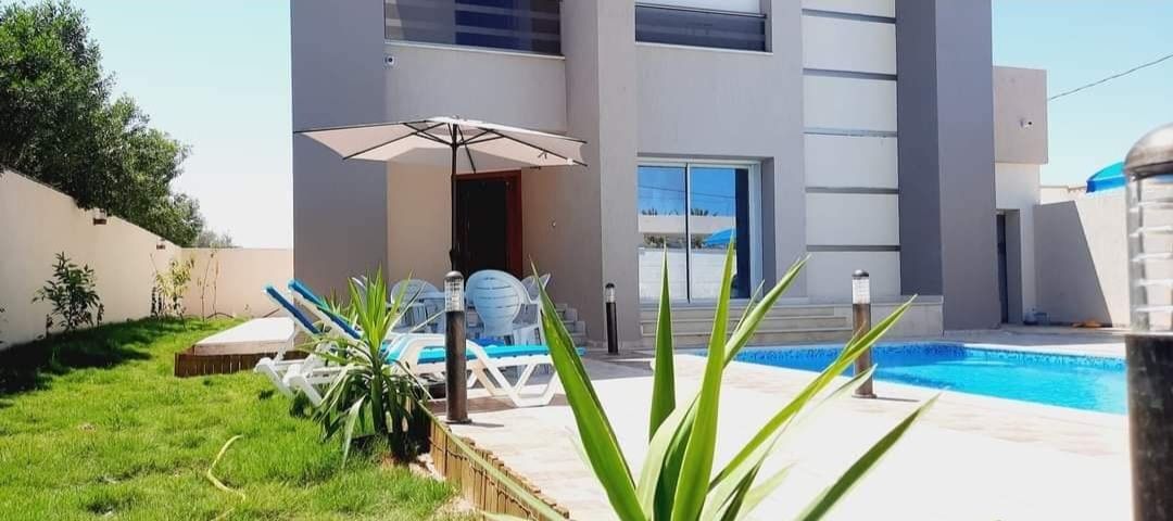 U našoj velikoj vili sa bazenom 10/4, opuštanjem i odmorom ćete pronaći svu udobnost koja vam je potrebna! Idealno se nalazi na putu za svjetionik između plaže Sidi Iati i Midoun, u blizini svih sadržaja, centra grada i plaže. Naći ćete u neposrednoj blizini vile u krugu od 300 metara sve potrebne prodavnice , mesnice, pekare, pošte, džamije, restorana kao što su zammouri roštilji.