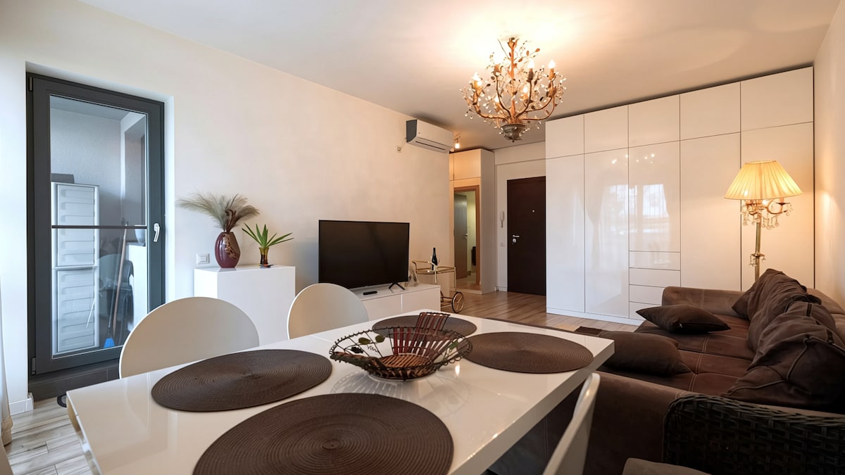 Moderni studio u Dobroestiju, na 5 minuta od bolnice Fundeni i tržnog centra Red Dragon. Stan nudi udoban bračni krevet, opremljenu kuhinju, moderno kupatilo, brzi Wi-Fi, pametni TV i klima-uređaj. Mirna lokacija sa brzim pristupom prevozu i prodavnicama, idealna za kraće boravke, medicinske posjete ili kupovinu.