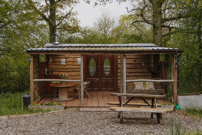 Brvnara u šumi, izgrađena od drveta iz naše šume. U krugu od 100 hektara seoskog parka Kvinsvud. Šetnje šumom. Udobna vatra za zimu, veranda za tople letnje noći. Potpuno opremljena kuhinja. Udoban bračni krevet. Dođite i živite sa drvećem i pticama. U blizini je crno-bela staza, ljubitelja hrane Ludlow, lovca na antikviteta Leominster i istorijskog Hereforda. Nacionalno poverenje kuće i bašte su nadohvat ruke. To je 40 minuta vožnje do festivalskog grada Hay on Wye.