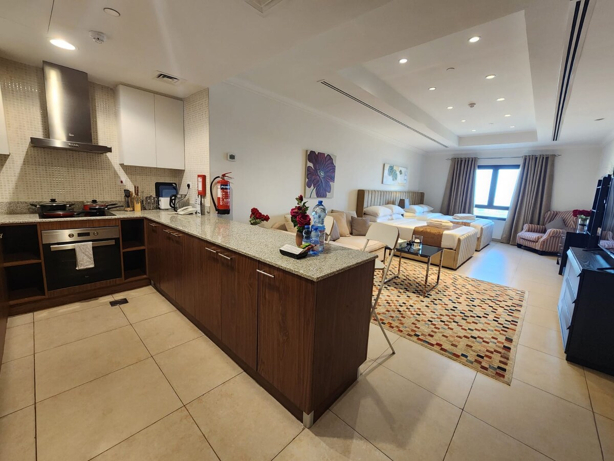 Savršeno za 2 odrasle osobe i 2 djeteta, sa opcijama za dodatni krevet ili dječiji krevetić. Ovaj studio apartman u Porto Arabiji nudi besplatan Wi-Fi, kompletnu kuhinju i pristup teretani, bazenu i đakuziju. Imajte na umu da, iako nema pristupa plaži, možete posjetiti plaže preko područja Zapadnog zaliva, udaljene samo 15 minuta vožnje! Čišćenje stana nije uključeno tokom boravka! Prijava je u 15:00; odjava je prije podneva.