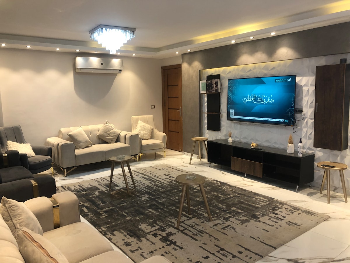 ✨Elegantan stan u mirnoj, sigurnoj zgradi usred inženjera✨. Stan u ulici Madinah, nekoliko koraka od avenije University of States –. Pogodno za turizam, posao ili udoban kratak boravak. . Potpuno namješten, udoban dnevni boravak, 3 tihe spavaće sobe, moderna kuhinja i 3 čista kupatila. Idealno za porodice i grupe, sa modernim dizajnom i kompletnim instalacijama koje garantuju udoban i prepoznatljiv boravak. Mjesto održavanja se nalazi u blizini🏛 Egipatskog muzeja🗼, Kairo tornja, Opere, Kan Al-Khalilija🏰, dvorca Saladin i Nila Korniša🛶, a Keman je na korak👣 od Univerzitetske ulice, restorana i kafića