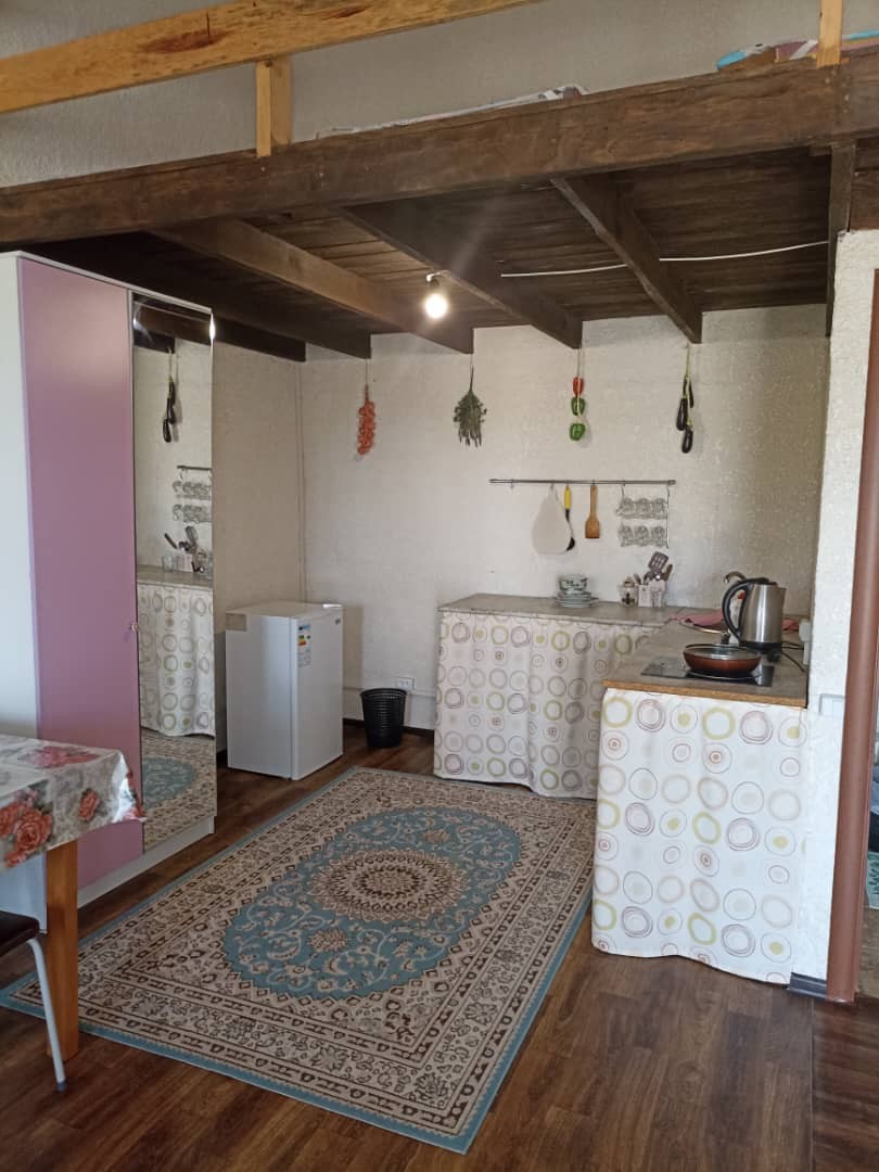 Seoska kuća se nalazi u rekreacionom centru „FONTANA“, u selu Karara Oi (Dolinka), 3 km od Cholpón Ata. Imate privatne stanove na 1. spratu seoske kućice, sa privatnim ulazom: 1. spavaća soba - veliki krevet, ormarić za stvari, ogledalo, činija, fotelja. Druga spavaća soba je veliki krevet + kauč na rasklapanje, šifon, ogledalo, postolje, fotelja, daska za peglanje. Studio sala (u kombinaciji sa kuhinjom) - veliki kauč na razvlačenje + kratki kauč, TV sa satelitskom televizijom i DVD-om.