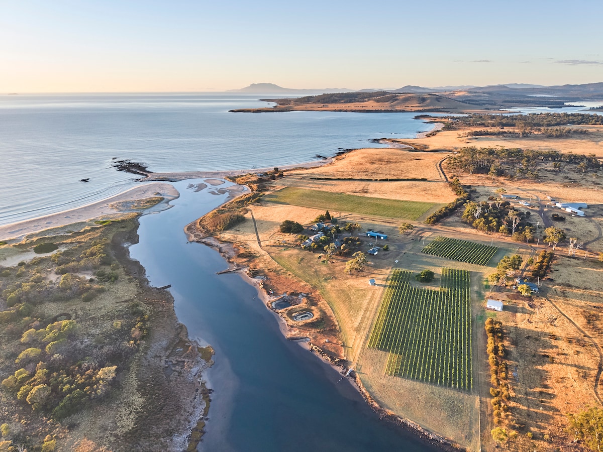 Ovo utočište samo za odrasle, u kojem se spajaju ekološki glamping i pažljivo osmišljen dizajn, smješteno je na 37 hektara privatnog šumovitog zemljišta na poluostrvu Frejzinjet. Boravite u svojoj jedinstveno uređenoj čauri, udobnom prostoru koji spaja udobnost, jednostavnost i održivost. Uživajte u neometanom pogledu na planine Hejzards preko zaliva Pelikan Bej iz hidromasažne kade, opustite se pored vatre i ponovo se povežite s prirodom. To je savršena baza za usporavanje tempa života i upoznavanje istočne obale Tasmanije.