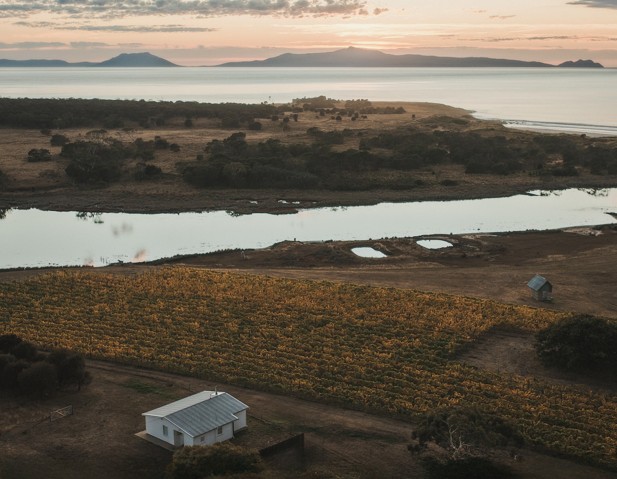 Private beaches. A river at your door. A historic stone cottage set within open farmland. Set on Lisdillon Estate, Blacksmith’s Cottage offers access to private beaches along over 4km of private coastline, with the rivulet running just below the cottage. Swim, kayak or settle by the fire with a glass of Lisdillon Pinot Noir in this 19th-century rubble-stone cottage. Positioned on Tasmania’s East Coast, around 25 minutes from the Maria Island ferry and 1 hour to Freycinet.