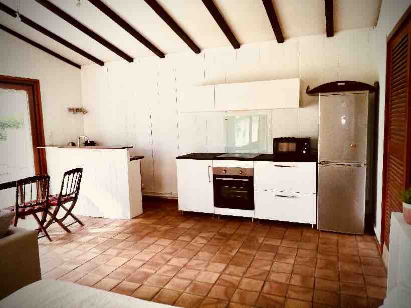 Studio je nezavisan od naše kuće. Ulazite kroz dnevnu sobu sa prozorom koji nudi prelepu jasnoću i opremljenu zavjesama za zamračenje kako biste postigli željenu tamu. Lepa drvena terasa, zaštićena. Opremljena kuhinja: ploča za kuvanje, hauba, rerna, frižider, mikrotalasna pećnica, aparat za kafu, čajnik. Soba sa bračnim krevetom, garderoba, skladište. Tuš/umivaonik/toalet u kupatilu. Parking mesto i namenski pristup kapiji.