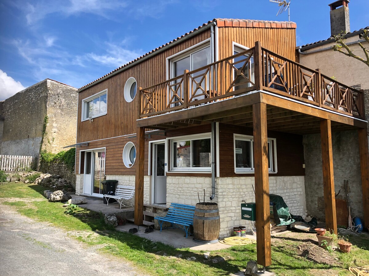 Dobro došli u moju kuću koju sam izgradio srcem, sve na parceli od 1500 m2. Nalazi se na 5 minuta od Kognaka u veoma mirnom malom selu po imenu Rikhemont. Uživaćete u veličanstvenom pogledu na šumu kako biste napunili baterije. Može da ugosti 9 odraslih osoba