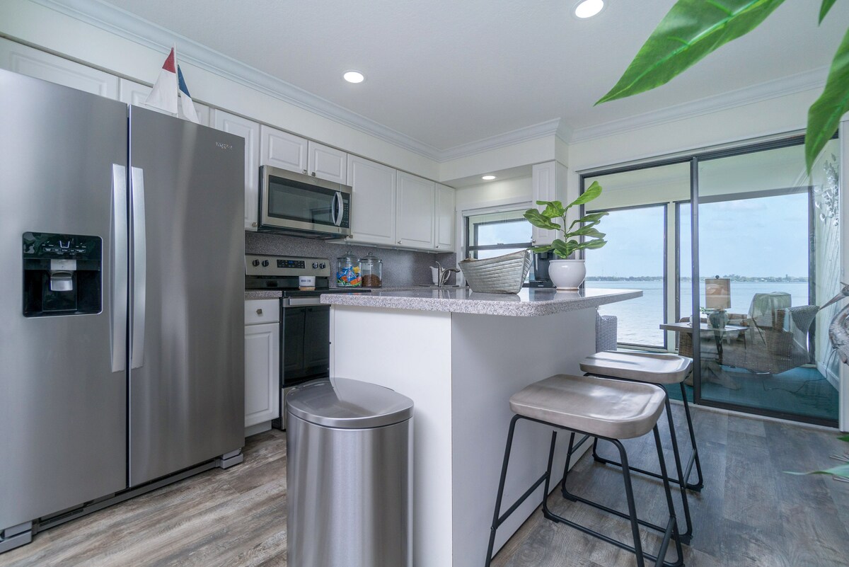Private beach access! Sunsets and panoramic views await in this exquisite condo overlooking the marina and the Intracoastal Waterway. Just beyond your door, enjoy waterfront luxury and complimentary water taxi service to private beach access on Palm Island, where nature is absolutely beautiful. The crystal blue waters and pristine beach are perfect for swimming, shelling, and finding shark teeth—no need to hassle with driving or parking!
