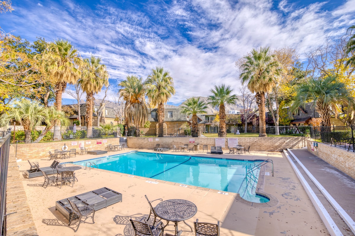 Doživite udobnost u ovom nedavno renoviranom kondominijumu koji se može pohvaliti klima-uređajem u frižideru, 2 bračna kreveta, 2 kupatila, brzim internetom, radnim prostorom sa monitorom, dnevnim boravkom sa pametnim TV-om, mašinom za pranje/sušenje veša, potpuno opremljenom kuhinjom, natkrivenim parkingom i balkonom sa pogledom na planine. Uživajte u ograđenom bazenu i prostoru za roštilj koji je dostupan od sredine maja do 4. septembra (zatvoreno ponedjeljkom za održavanje). Nalazi se u centru grada u blizini UTEP-a, bolnica Las Palmas i Providens, centra grada, bejzbol stadiona, restorana, noćnog života i ulice I-10.