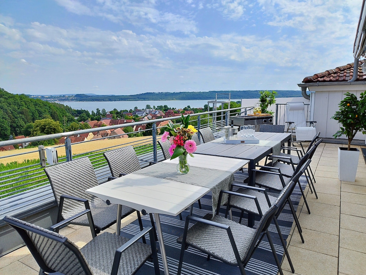 ♥ Lagani penthaus sa pogledom na jezero ♥ Sauna, sup ♥ 30 minuta od Nirnberga i Švabaha ♥ 218 m² stambenog prostora, uključujući terasu od 55 m² ♥ 3 spavaće sobe sa 2 bračna kreveta ♥ 2 bračna kreveta (1,6x2) ♥ 1 visokokvalitetni kauč na razvlačenje, 2 kreveta ♥ Potpuno opremljena kuhinja sa velikim trpezarijskim stolom za 12 osoba ♥ 5 pametnih televizora, od kojih je jedan 70" + zvučni bar ♥ Disney+, Wii ♥ 1 radno mjesto ♥ 3 besplatna podzemna parking mesta +20 u spoljašnjem prostoru ♥ XXL terasa na krovu sa roštiljem na gas Do jezera se stiže♥ peške peške