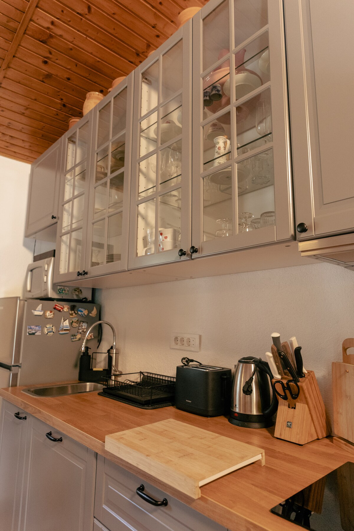 Udobna seoska kuća nudi modernu i dobro opremljenu kuhinju. U bašti se nalaze hidromasažna kada, sauna, kamin i roštilj, gde možete da pripremite hranu i uživate u nezaboravnim zalascima sunca. Šarmantna unutrašnjost seoske kuće je kombinacija drveta, stakla i kamena. Odmor u kolibi Sončni Grič u zagrljaju vinograda, šumskih i ratnih ptica će vas povezati sa prirodom i njenim ljekovitim moćima. Sončni Grič se nalazi na samo korak od izlaza sa autoputa Trebnje Istok.