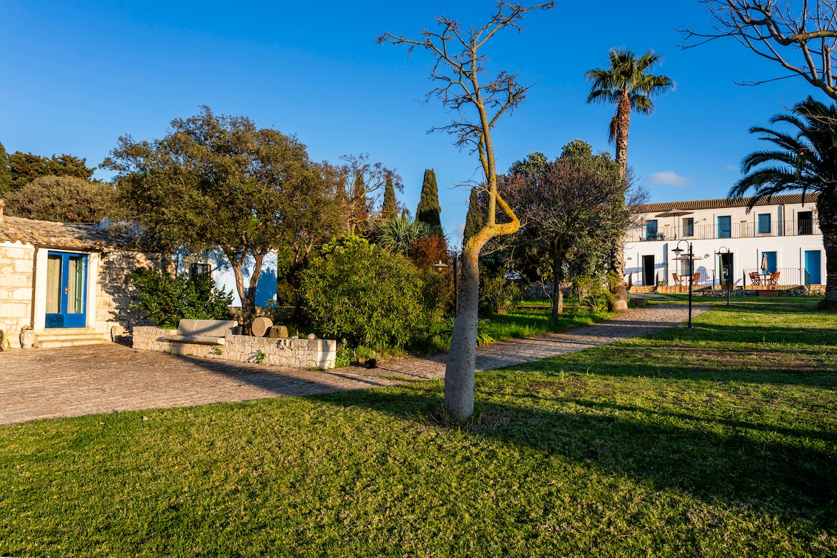 In this authentic eighteenth-century farmhouse you can still breathe echoes of poetry. Come and be inspired... In the house you will find a taste of freedom, simplicity, imperfect beauty: the charm of the boundless horizon, of life without the superfluous, of the lightness of sustainability. The garden is a oasis where you can contemplate the stars. Just outside, the nature of the truest Sicily: where rows of dry stone walls divide solitary carob trees and the gaze runs towards the silent sea.