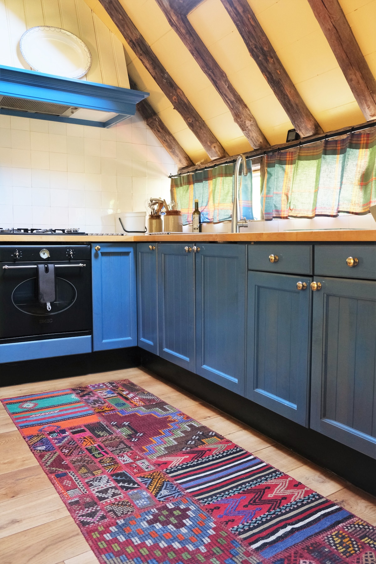 Dobrodošli u Bosch en Duin, u našu nekadašnju garažu/šupu koja je 1. septembra 2016. godine pretvorena u veoma luksuzan i elegantan smeštajni objekat. Idealno za 2 osobe, ali i pogodno za porodicu sa 2 dece ili 4 prijatelja. Kuća je potpuno izolovana i greje se podnim grejanjem i peći na drva. Zahvaljujući prozoru veličine garažnih vrata, prozorima koji sežu do krova i 3 velika krovna prozora, prostor je predivno osvetljen i pruža predivan pogled na baštu i šumu od ukupno 2800 m. Garaža se sastoji od jedne velike prostorije sa drvenom jedinicom u sredini. Na jednoj strani jedinice nalazi se lepa, kompletna kuhinja sa 4 ringle/konvekcijskom pećnicom, mašinom za sudove i frižiderom sa zamrzivačem ugrađenim u radnu ploču od tvrdog kamena. S druge strane nalazi se mali, ali ukusno uređeni tuš (termostatska slavina), WC šolja i umivaonik sa automatskom slavinom i osvetljenim ogledalom protiv kondenzacije. Jedinica nudi prostrane ormare i fioke, kao i stepenice koje vode na sprat. Na jedinici se nalazi bračni krevet dimenzija 1,60 x 2,00 m sa predivnim jorganom od ovčje vune dimenzija 2,00 x 2,00 m. Za goste koji se plaše visine, u dnevnoj sobi nalazi se prostran i udoban kauč koji se jednim potezom pretvara u bračni krevet dimenzija 1,40 x 2,00 m. Pored prostrane ugaone sofe, tu je i udobna fotelja koju možete približiti peći. U trpezariji se nalazi veliki drveni sto sa 4 stolice. Crteži i keramičke skulpture našeg sina, autsajderskog umetnika Hanesa, daju prostoru veoma ličan i veseo izgled. Kuća ima sopstvenu, zatvorenu i lepo zaštićenu terasu sa udobnim baštenskim stolicama sa jastucima. U šumi se nalazi klupa na kojoj možete uživati u prirodi ili čitati knjigu. Na kraju, tu je i viseća ležaljka za popodnevni odmor. Kuća ima Wi-Fi, koji se može koristiti za gledanje televizije na iPadu preko naše Ziggo veze, kao i radio. Dakle, nema televizora sa ravnim ekranom. Mi imamo psa, ali ne želimo psa u De Garage. Gosti mogu koristiti celu kuću, ali i terasu, šumu i prilaz za parkiranje automobila. Bićemo prisutni kada gosti dođu i odu. Tada ćemo gostima reći nešto o našoj kući, opremi i okolini. U smeštaju nije dozvoljeno pušenje. Ne obezbeđujemo doručak ili druge obroke. Kombinujte prirodu i kulturu u „De Garage”, na imanju Ter Wege u Boshu i Duinu, okruženi šumama Utrechtskog grebena i na maloj udaljenosti od Utrehta i Amersforta sa njihovim brojnim muzejima, restoranima i drugim zabavnim sadržajima. Gosti mogu da koriste naše bicikle. Autobuska stanica je udaljena oko 10 minuta hoda. Naravno, sopstveni prevoz je uvek lakši i brži. Gosti nas uvek mogu kontaktirati telefonom ako imaju pitanja.