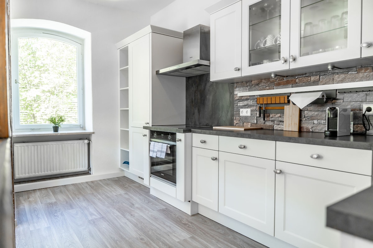 Dobro došli u naš potpuno novouređeni i s ljubavlju namješteni dvosobni stan! Savršeno za turiste, poslovne putnike ili dugoročne stanare koji otkrivaju Koburg na opušten način ili su u gradu zbog posla. Naš moderan i svijetlo dizajniran stan nalazi se na mirnoj, ali centralnoj lokaciji u Koburgu i ima sve što vam je potrebno za udoban boravak. Uvijek smo vam na raspolaganju i rado ćemo vam pomoći sa savjetima za boravak u Koburgu!