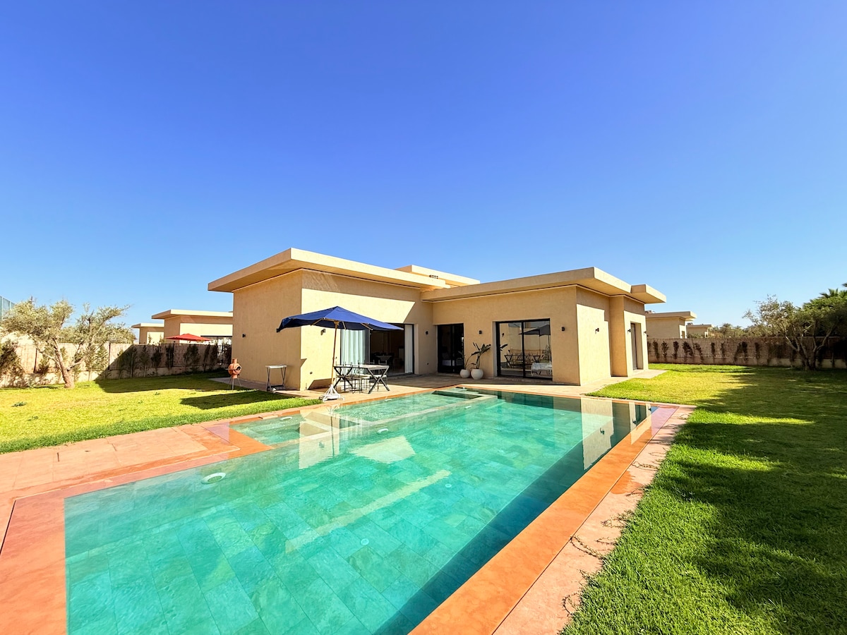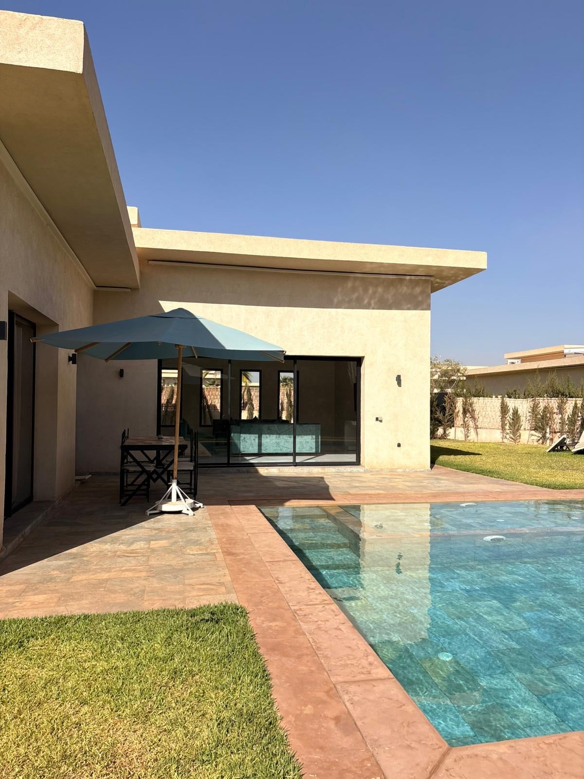 Bienvenue dans notre villa datant de aout 2024 de 300m2 dans une résidence fermée et sécurisée, avec piscine chauffée en option à 15 mn seulement du centre de Marrakech et moins de 20 mn de l’aéroport et a 20mn de la place Place Jemaa el fna avec une vue sur les crètes enneigés du Haut Atlas. Située sur le prolongement du boulevard Mohamed VI sur la route d’ourika dans l’Oliveraie d’Akenza, cette villa avec sa piscine et son jardin entièrement privatif et avec ses 3 chambres.