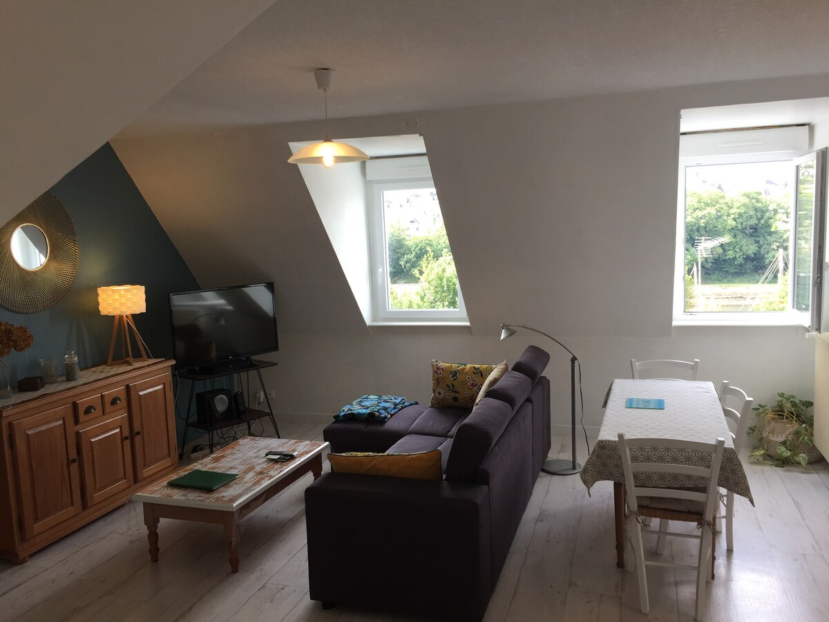 Studio od 27 M2 sa pogledom na more. Ova garsonjera je prostrana, renovirana, dobro opremljena i veoma funkcionalna. krevet za 2 osobe 160 * 190. Posteljina je obezbeđena. Uživate u pogledu na more. Zgrada je tiha. Uživaćete u pogledu na more, svetionik na ostrvu Tristan i deo luke Trebul . Na jednoj strani je ribarska luka koja se nalazi na 600 metara, a s druge marina je lako dostupna za nekoliko minuta hoda. Dvorane su udaljene 400 m od garsonjere.