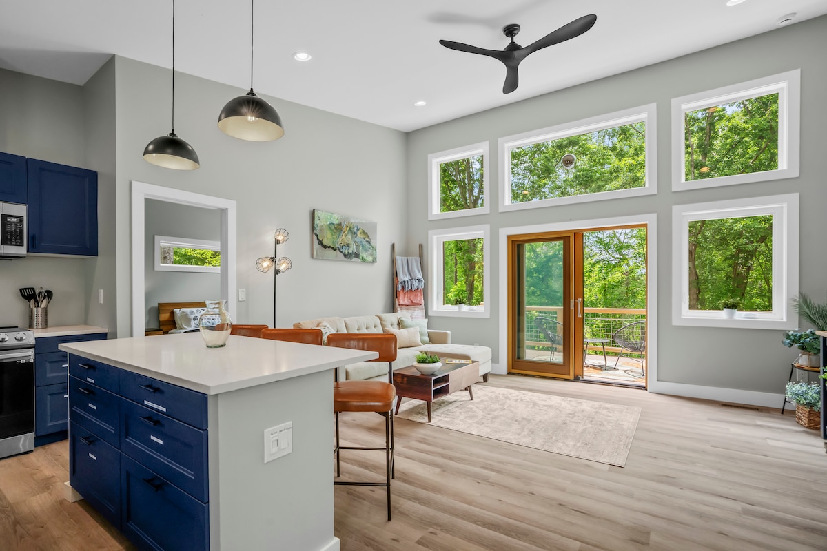 Surrounded by a bamboo forest just outside of Asheville, our private, loft-style home has high ceilings and ample natural light that fills the space all hours of the day - a cozy sanctuary! Professionally designed for comfort and style, you might not want to leave! If you do, you're just 15 mins downtown AVL and a short drive to the Blue Ridge Parkway. Whoever you are, you are welcome here! We have over 200 Five-Star reviews for a reason. We care deeply about providing a great place to stay.