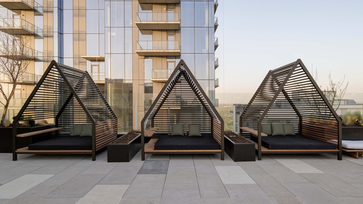 - Luksuzni bazen na krovu u stilu odmarališta sa kabanama pored bazena (33. sprat) - Neverovatan pogled na horizont Ostina - Otvoreni salon na krovu i ognjišta na gas (33. sprat) - Salon na terasi, klupska soba na krovu i prostor za saradnju (33. sprat) - Fitnes centar, salon za jogu i privatni studiji Peloton (10. sprat) - Kafić/prostor za zajednički rad (1. sprat) - Lobby lounge (1. sprat) - Punjenje električnih vozila i skladište za bicikle - Privatni balkon i dodatni kauč za spavanje u vašem stanu