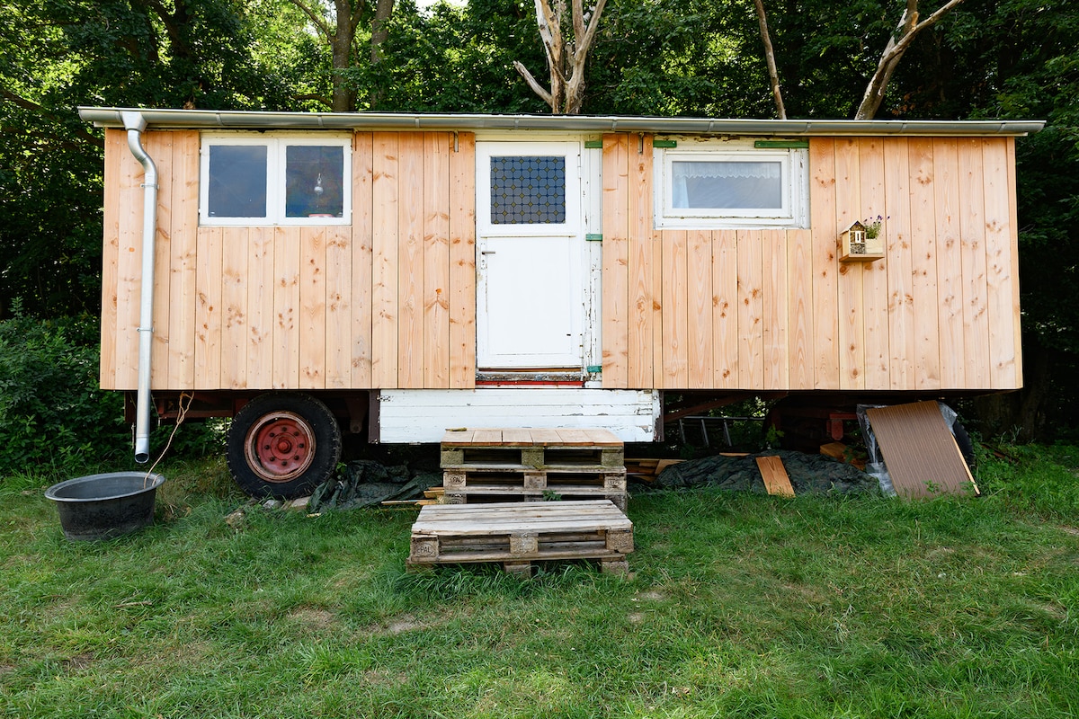 Prostran i udoban, potpuno opremljen automobil. Vrlo je tiho na seoskom putu, između glavne kuće i komšije u prirodnoj bašti. Spavaća soba u prednjem dvorištu, prostor za sedenje do malina , kuhinja, frižider/plinski šporet, protok. Voda iz pumpnog sistema (hladna). Cl. Kupatilo sa vešom. (hladno). Privatna bašta sa prostorom za sedenje. Privatna tuš kabina u kući . 1 km do mesta za plivanje i planinarske staze na Baltičkom moru. Darß i Zingst i Fischland su lako dostupni dobrim biciklima.