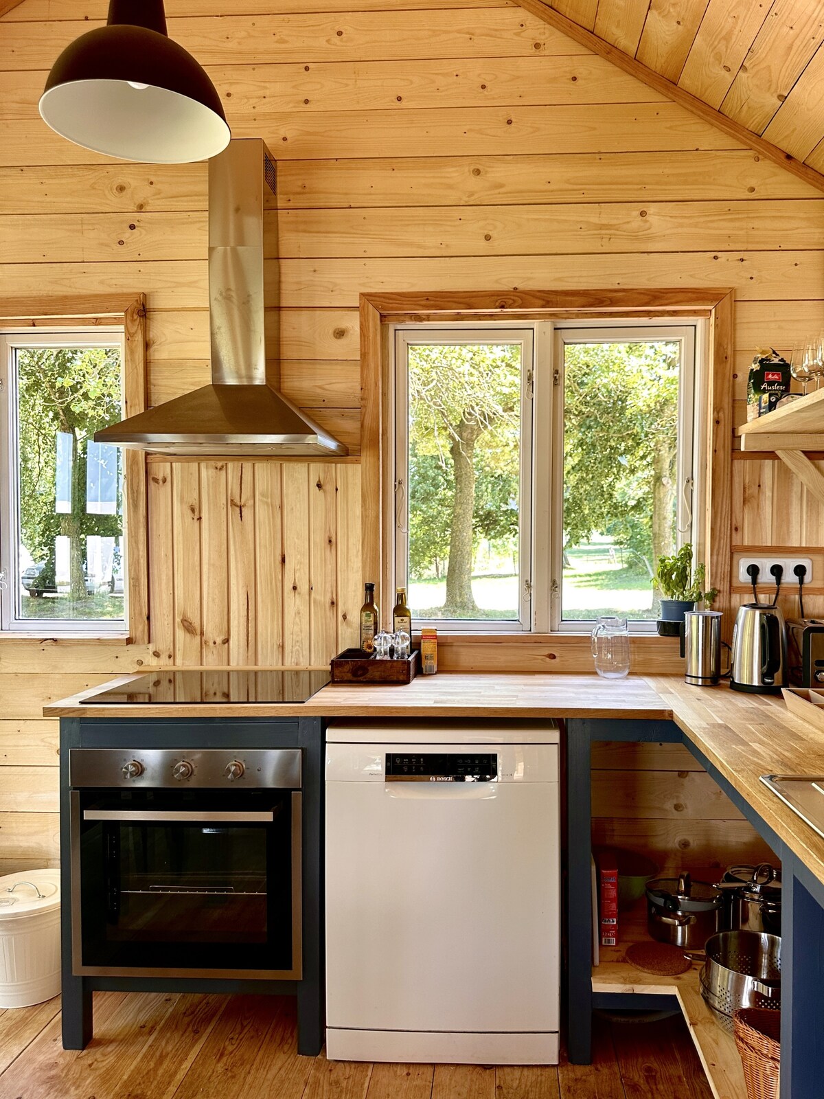 Dobro došli na naš idilični zajednički šumski posjed od 14.000 m² na Uzedomu! Ovo su 3 bungalova i 2 luksuzne kamp-prikolice. Uživajte u prirodi, udobnosti i pogledima na Kruminer Vik koji oduzimaju dah. Vaša potpuno nova (2025) luksuzna kamp-prikolica (20 m²) nudi elegantnu udobnost za one koji traže prirodu i rekreaciju. Uključuje dnevni boravak, kuhinju i prostor za spavanje sa bračnim krevetom. Privatna hidromasažna kada i privatni baštenski namještaj pozivaju vas da se opustite. Posteljina i peškiri su uključeni.