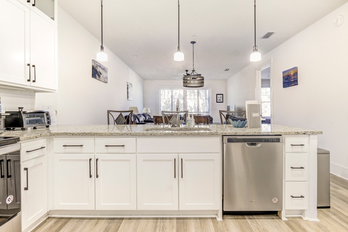 Potpuno renoviran! Ovaj novouređeni kondominijum je odlično mjesto za povratak nakon što istražite sve što ostrvo Sent Simons nudi. Samo 5 kilometara od plaže i seoskog područja, savršeno je za malu porodicu ili par. Kondominijum ima privatni parking i odličan zajednički bazen. Uživajte u koktelu na privatnoj terasi dok pripremate večeru na roštilju! Pametni dom sa Aleksa u svakoj sobi. Muziku možete da imate u bilo kojoj prostoriji ili cijeloj kući, da uključite i isključite svjetla glasom i još mnogo toga.
