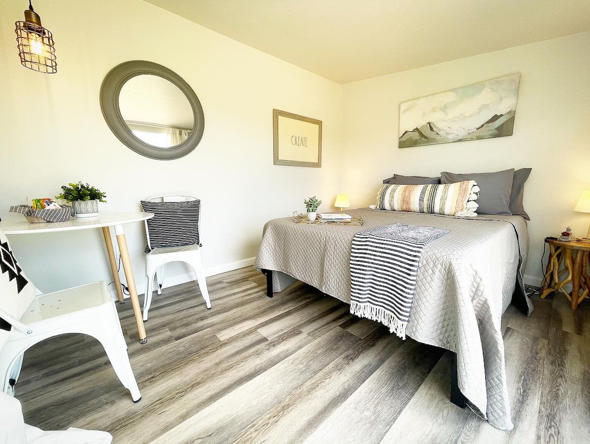 Otkrijte naš jednosobni apartman na našem ranču Madrona od 30 hektara, okružen veličanstvenim hrastovim drvećem. Opustite se na prijatnom trijemu ili posmatrajte zvijezde na kamenom dvorištu. Ovaj novi apartman ima vrhunsku završnu obradu, uključujući prilagođene ormariće, svodove, kvarcne pultove i podove od javorovog drveta. Uživajte u pogledu na zemlju i zvjezdanom nebu. Treba vam više prostora? Raspitajte se o naša 2 dodatna bungalova i smještaju s 2 spavaće sobe u sklopu objekta. Čeka vas bijeg. 1 Spoljašnja bezbjednosna kamera je okrenuta prema parkingu
