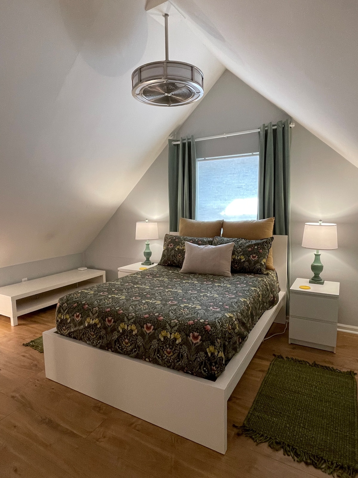 Uživajte u predivnom pogledu na šumu iz ove glavne spavaće sobe - pretvorenog apartmana koji se nalazi među drvećem. Popnite se stepenicama na zadnjem delu kuće (više od 40 stepenica, budite spremni) i osećajte se kao da se penjete u živahnu nadstrešnicu u Atlanti. Pogledajte izlazak sunca sa prozora pune visine. Uživajte u kafi i užini u potpuno opremljenoj čajnoj kuhinji. Kasnije pješačite manje od 15 minuta do lokalnih restorana, kafe i barova. Prošetajte pola sata do čuvene gradske pijace Ponce. STRL-2022-00606