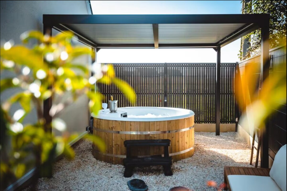 Toi + moi <3 Offrez vous un moment de sérénités et Détendez-vous dans un jacuzzi thérapeutique digne des plus belles thalassos et profitez d’un moment chaleureux à deux. Petit déjeuner et décoration romantique en option. Vélos électriques, service à raclette et parking privé sécurisé à disposition. Une escapade unique, mêlant détente, chaleur et évasion. Tout est là pour que vous passiez une belle soirée au calme en amoureux loin de l’agitation du quotidien. Un peu de zen ça fait du bien. <3