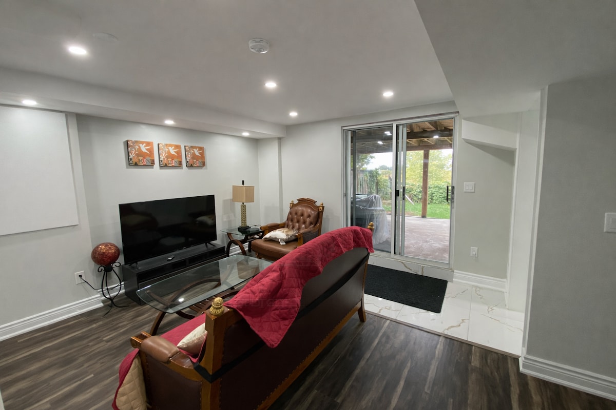 Ovaj udoban podrumski apartman ima sve što vam je potrebno. Wi-Fi, Smart TV, privatno kupatilo, frižider, mikrotalasna rerna, toster, aparat za kafu, čajnik itd. (mini čajna kuhinja - nedavno nadograđena u junu 2021.). Zajednički ulaz u kuću sa vlasnicima. Mirna kuća u prijateljskom komšiluku. Udaljenost do rekreacionog centra Alder, Sobeys, LCBO-a, apoteke, Tima Hortonsa, DQ-a, Mekdonalda i mnogih drugih.