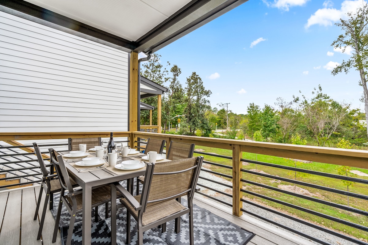 Bukvalno u glavnoj ulici u centru Durhama! Bićete blizu SVEGA! DPAC, Durham Bulls, Carolina Theater, nevjerovatni restorani i kafići, prodavnice kampusa američkog duvana, restorani i jedinstvena staza. Sve je u krugu od 3 bloka! Uživajte u izlasku ili zalasku sunca s pogledom na čuveni vodeni toranj Lucky Strike sa udobne terase na krovu. Ili prošetajte kući za NEKOLIKO MINUTA od bejzbol utakmice ili DPAC predstave. Savršeno uređen stan sa svime što vam je potrebno za sjajan i opuštajući boravak.