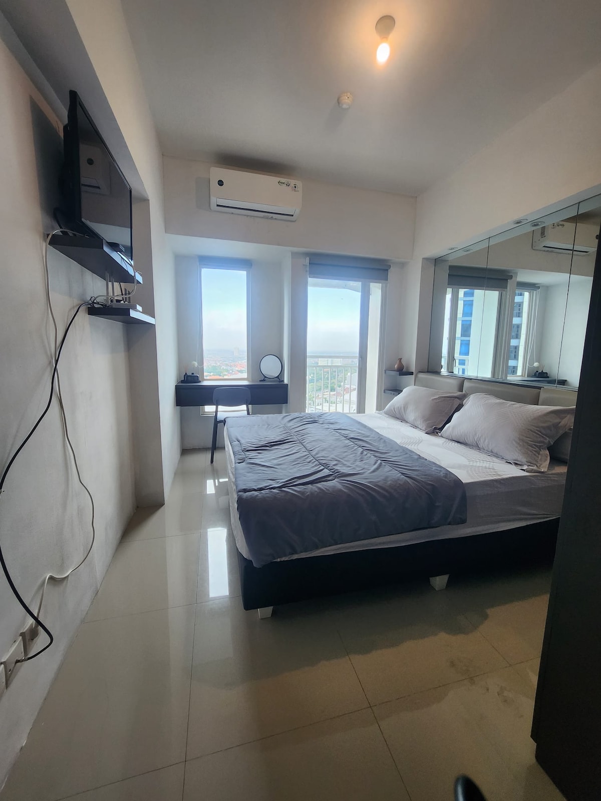 Moderan, dobro dizajniran i opuštajući stan za boravak. Sa 2 spavaće sobe, 2 kupatila i dobro opremljenom kuhinjom i mnoštvom sadržaja, to je vaš dom daleko od doma. Veličina stana: 64 m2 Smješten na vrhu kompleksa tržnih centara Ciputra World, stan ima direktan pristup hrani, kupovini, zabavi. Takođe je udaljen samo 5 minuta vožnje do autoputa, što ga čini odličnom odlukom ako želite da istražite ne samo Surabaju, već i mnoga zanimljiva mesta izvan grada.