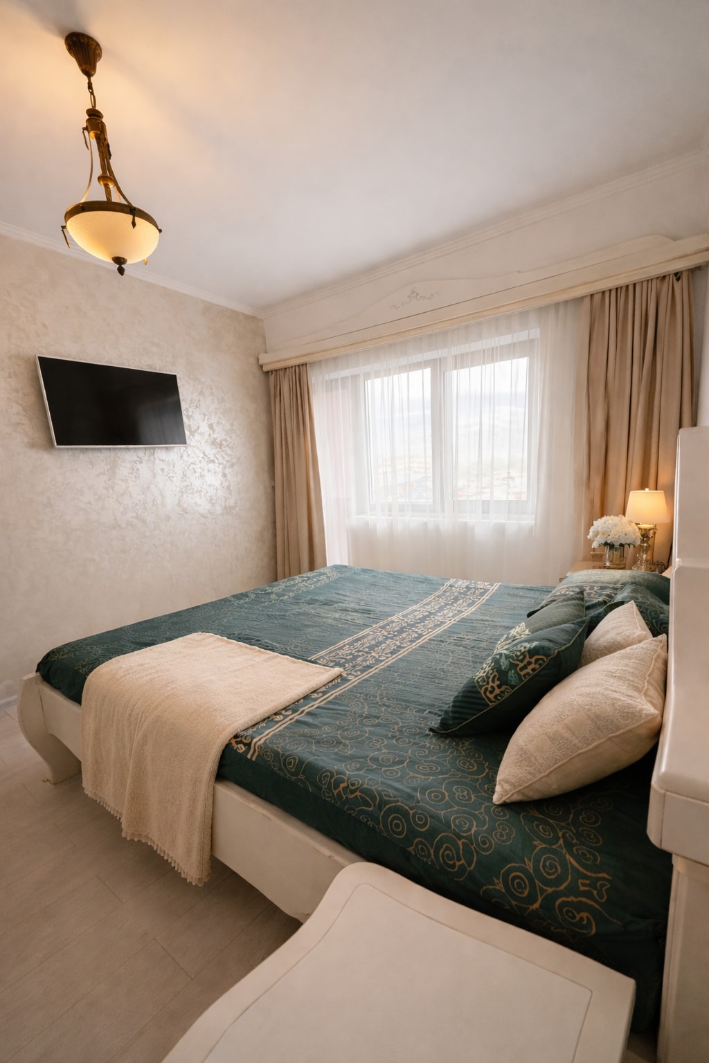 Dobro došli u moderan stan od 60 m² u rezidenciji Ateneo, koja se nalazi u poslovnoj zoni Torontalului u Temišvaru. Uređen originalnim umjetničkim djelima, stan nudi udoban bračni krevet (širine 150–179 cm), otvoren dnevni boravak, potpuno opremljenu kuhinju i prostrani privatni balkon (9 m²). Besplatan dodeljeni parking nalazi se odmah ispred zgrade, a Lidl supermarket je udaljen samo nekoliko koraka. Centar grada i grad Julije udaljeni su 8–10 minuta vožnje automobilom, što je idealno za poslovna putovanja, duže boravke ili opuštene gradske odmore.