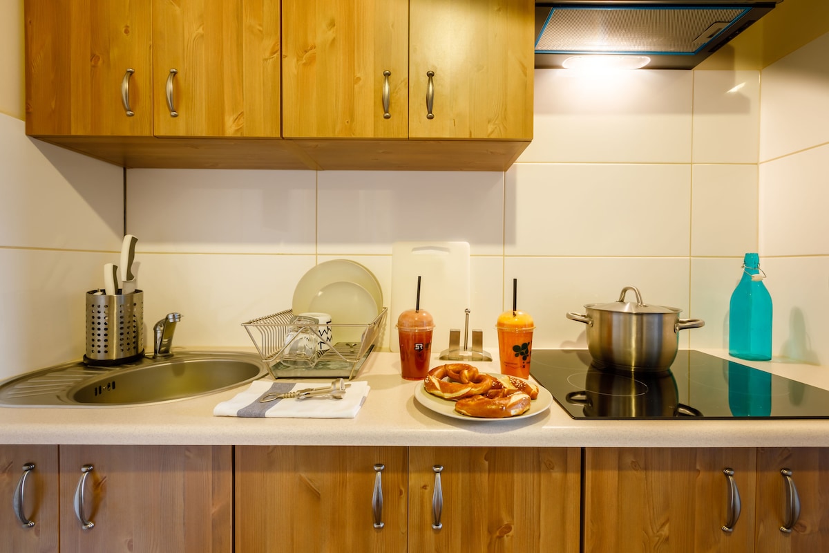 Open the lush floor-to-ceiling drapes to look out onto a cityscape that's barely changed in well over a century. On the left, you'll see the medieval gothic towers of the St. Mary's Basilica from where the famous trumpet call is played. This bright, stately studio features chic furnishings and stylish pieces of modern art. Situated next to the Market Square, it is the best place to explore the city's rich history.