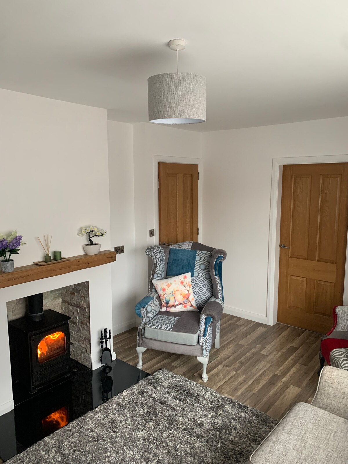 Udobna seoska brvnara sa prelijepim panoramskim pogledom na brda Antrim sa slemišem u daljini. The Burrow je luksuzna brvnara u prizemlju sa ekskluzivnom upotrebom privatne bašte, unutrašnjeg dvorišta i hidromasažne kade. Stan je udaljen 30 minuta vožnje od zadivljujućih atrakcija na sjevernoj obali i 45 minuta vožnje od Belfasta. Stan se nalazi 50m od naše kuće, tako da smo u blizini kako bismo vam boravak učinili prijatnim.