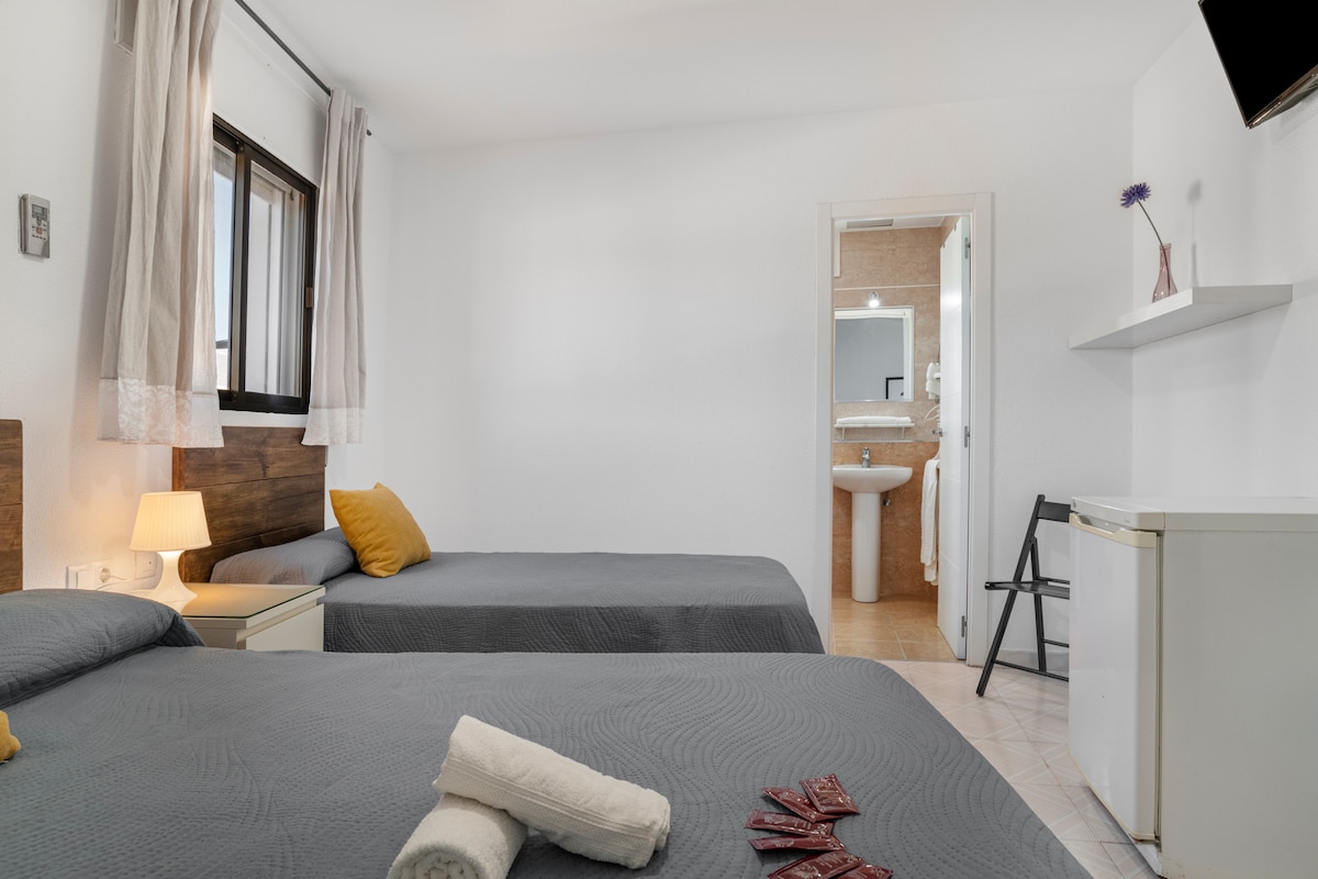 The Room Habitación Triple in a 1star hostel is ideally located in the heart of Roquetas de Mar, offering a convenient and central location. Objekat sa 3 sprata se sastoji od dnevnog boravka, 1 spavaće sobe i 1 kupatila i stoga može da primi 3 osobe. Dodatni sadržaji uključuju brzi Wi-Fi (pogodan za video pozive) sa posebnim radnim prostorom za kućnu kancelariju, TV i klima-uređaj.