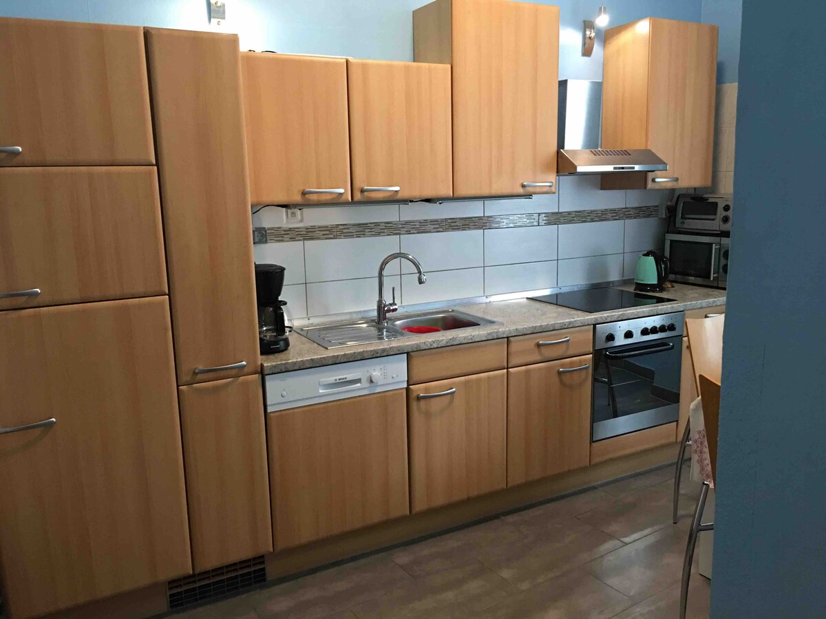 Osjećajte se kao kod kuće u našem nedavno renoviranom stanu (2 sobe, kuhinja, kupatilo). Na centralnoj lokaciji u Badenu-Badenu Reblandu možete pronaći raznovrsnu sportsku i kulturnu ponudu sa odličnom infrastrukturom. Stan površine oko 50 m² oduševiće vas svojom opremom. Potpuno opremljena kuhinja, TV sa Netflix-om, bračni krevet, kauč na razvlačenje, tuš sa efektom kiše, fen za kosu i besplatan parking u sklopu objekta obezbeđuju vašu dobrobit.