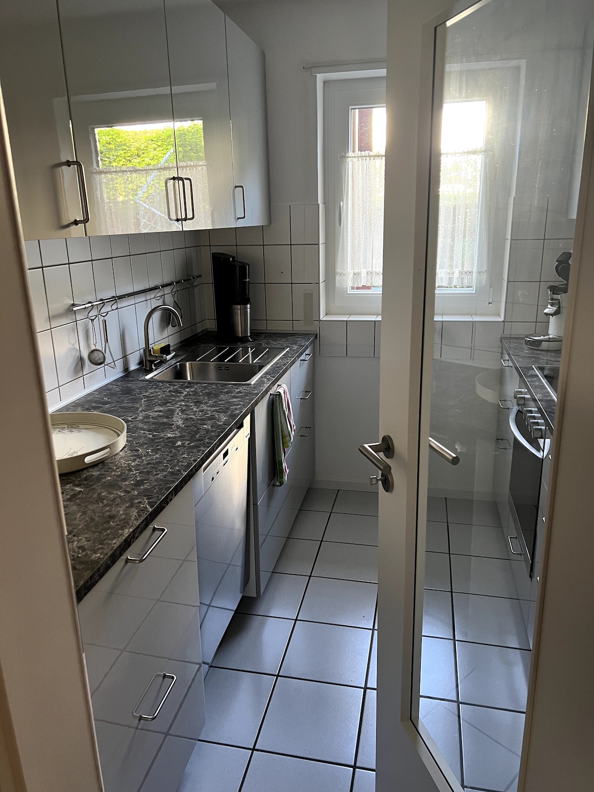 Šik, svetao stan iz snova sa 3 spavaće sobe, otvorenom kuhinjom i dva moderna kupatila. U vili u okrugu Durlach, predgrađe Karlsruhea, drveća i vinograda vas okružuju i fantastičan pogled na Karlsruhe do Rajne ravnice. Imate osećaj da boravite u kućici na drvetu! Uživajte u sundowneru na odličnoj terasi, zalazak sunca je zagarantovan. Do centra Durlacha sa svim prodavnicama možete doći pješice za 20 minuta. Centar grada Karlsruhe za 15 minuta. Savršena povezanost sa A5/ A8