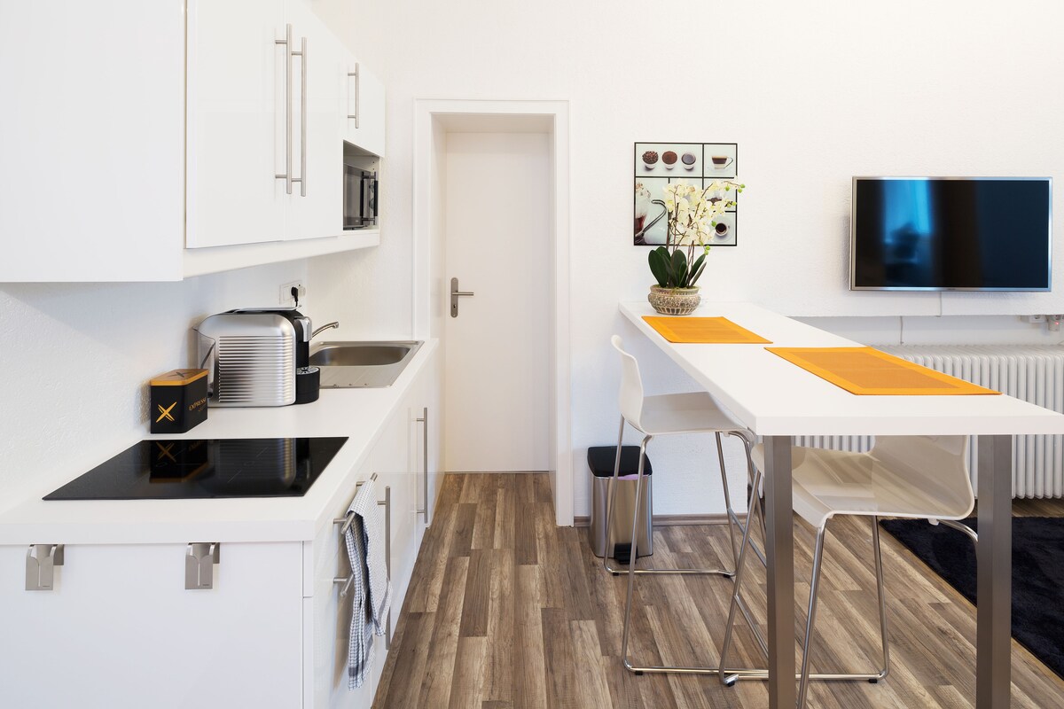 Tihi, elegantni studio smješten u zaštićenom dvorištu, u centru Dizeldorfa. Mjesto gdje možete da dođete, odahnete i osjećate se kao kod kuće – odlično za poslovne putnike, duže poslovne boravke ili privatne gradske odmore. Bilo da želite da se fokusirate na posao, da živite u Dizeldorfu nekoliko mjeseci ili da se jednostavno opustite i napunite baterije, ovaj studio kombinuje mirno okruženje sa neposrednim pristupom gradu i javnom prevozu.
