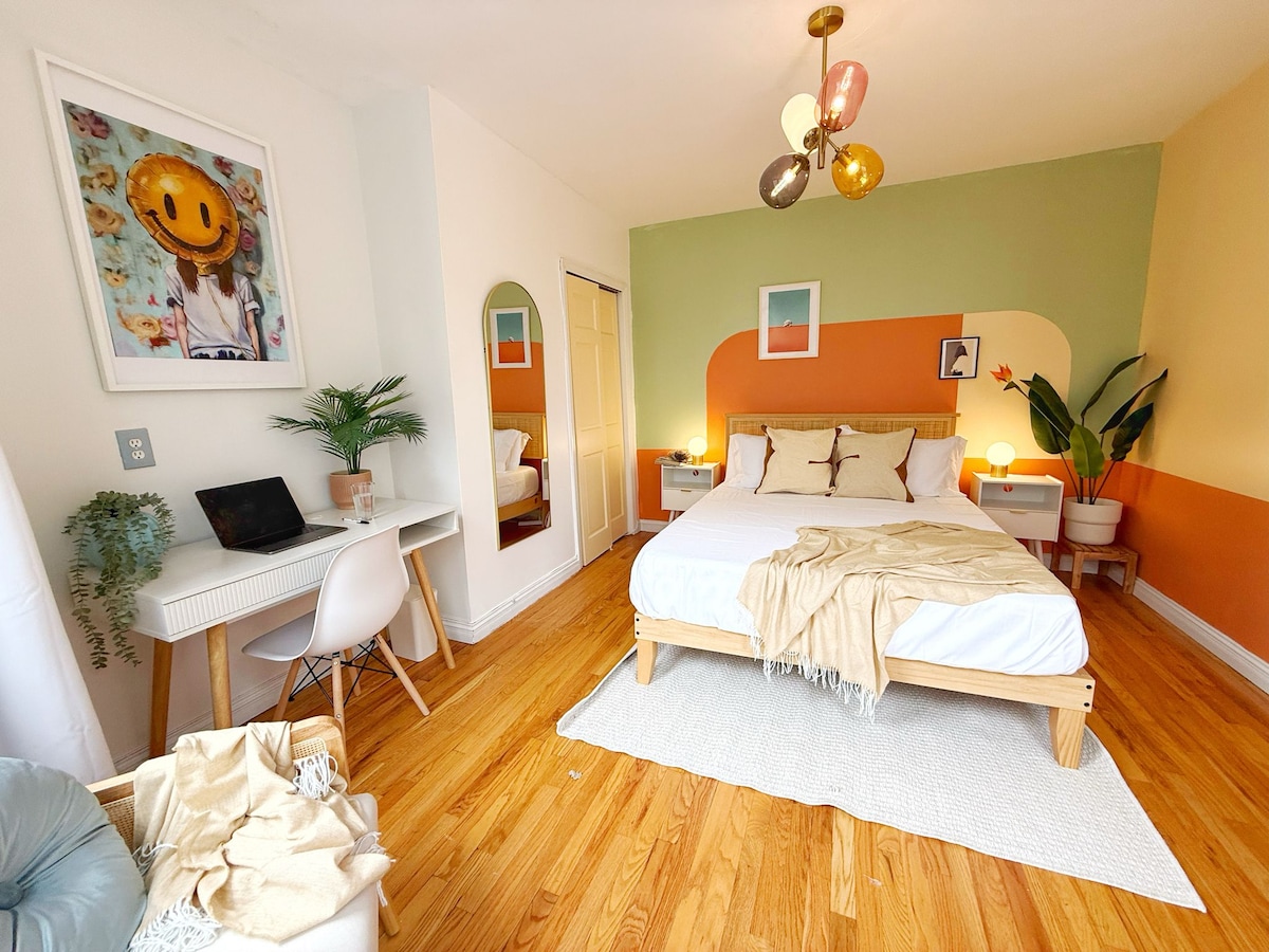 Opustite se u ovoj mirnoj, elegantnoj privatnoj spavaćoj sobi. Soba ima bračni krevet, TV, ormar, prostor i pogled na Njujork sa vašeg prozora. Takođe ima klima-uređaj/grijanje na daljinsko upravljanje i dijeli kupatilo u hodniku. Bićete blizu svega kada odsjednete u ovom smještaju koji se nalazi u centru grada. Uživajte u mnogim lokalnim parkovima, kao što su park skulptura Sokrat i ostrvo Ruzvelt. U blizini su vozovi i autobusi. Uvijek sam vam na raspolaganju dok živim u jedinici.