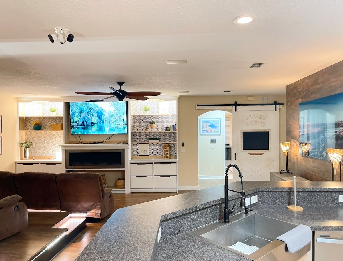 🌟 The Only Clear-Roof Enclosure around Heated Saltwater Pool in Jax! Experience the ultimate Florida vacation in our serene, open-concept home. Whether it’s a sudden afternoon shower or a breezy evening, our exclusive clear-roof pool enclosure means your swim is never canceled. Enjoy the sun and the view without the bugs or the rain! Nearby: Restaurants & groceries - 2 min Beaches - 15 min Mayo Clinic - 10 min UNF - 10 min Jaguars Stadium - 15 min Ponte Vedra - 20 min St. Augustine - 35 min