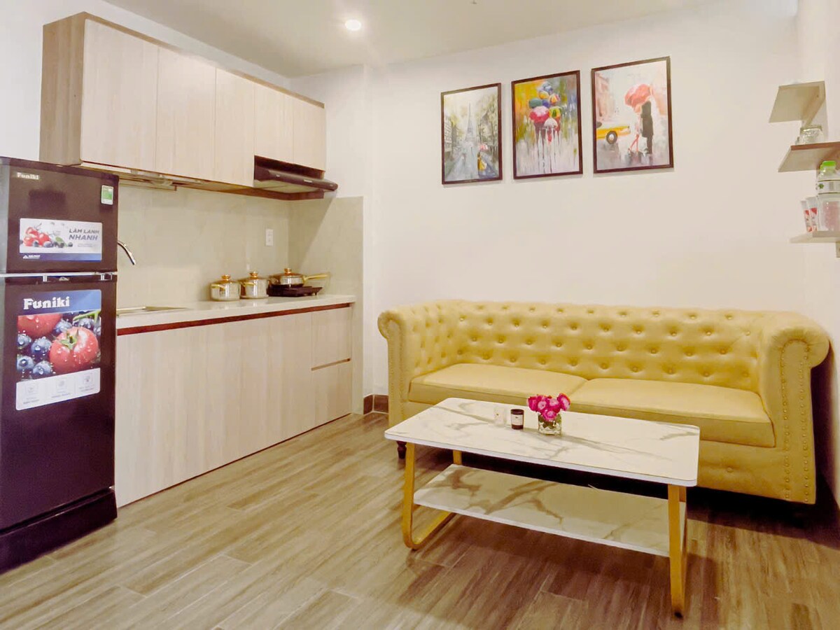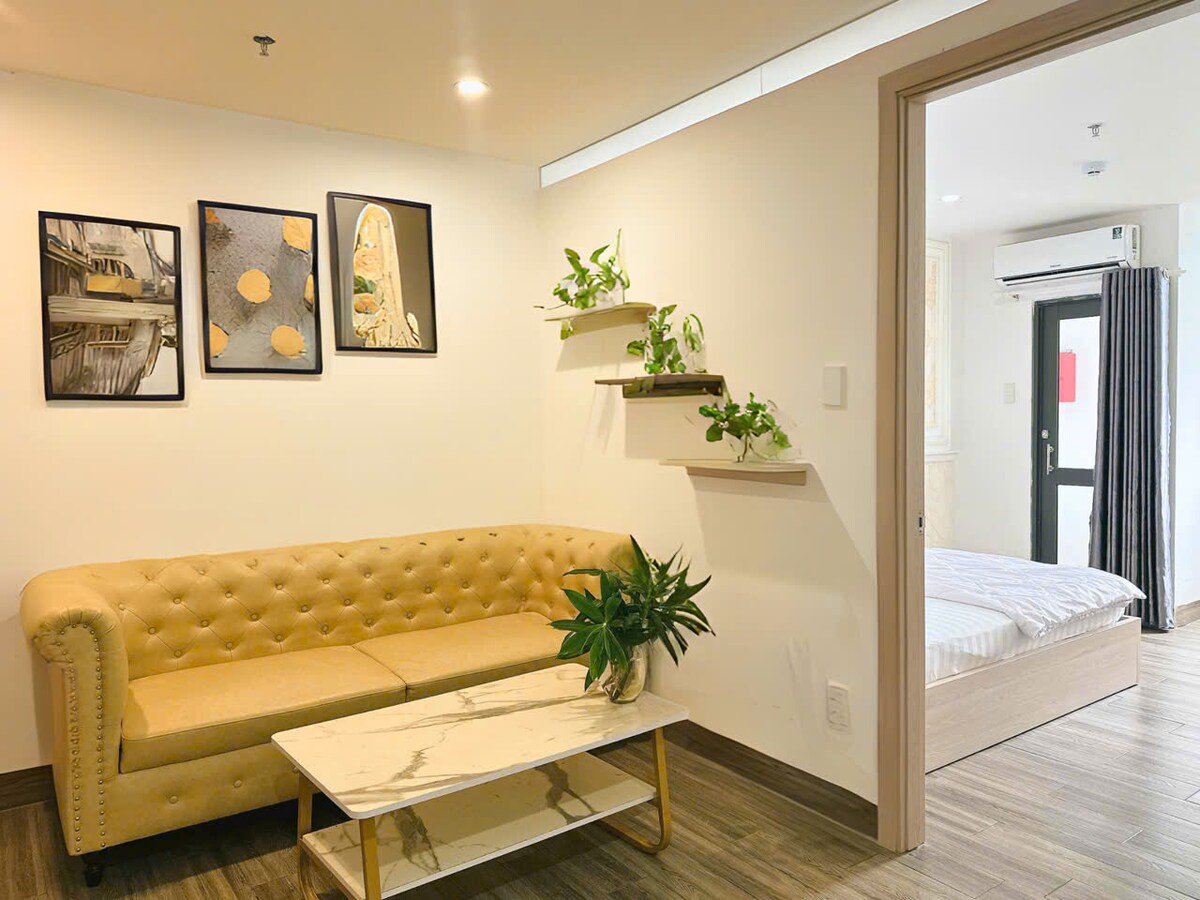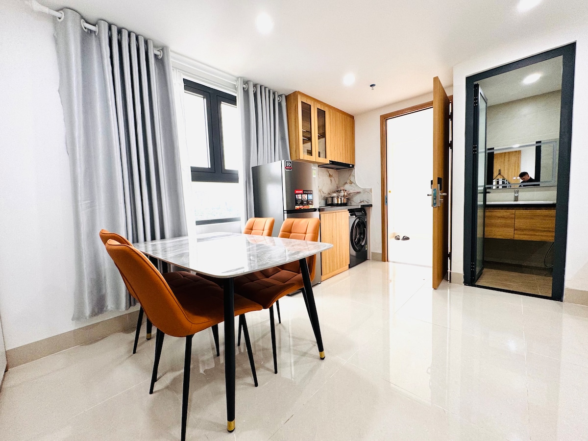 Căn hộ studio rộng rãi, hiện đại, nhiều ánh sáng tự nhiên với nội thất sang trọng, mang lại cảm giác thoải mái như ở nhà. Vị trí nằm giữa Đà Nẵng và Hội An, thuận tiện khám phá biển và phố cổ chỉ trong ít phút. Không gian ngoại ô yên bình đậm chất Việt Nam, dễ di chuyển, phù hợp cho kỳ nghỉ ngắn ngày hoặc lưu trú dài hạn.