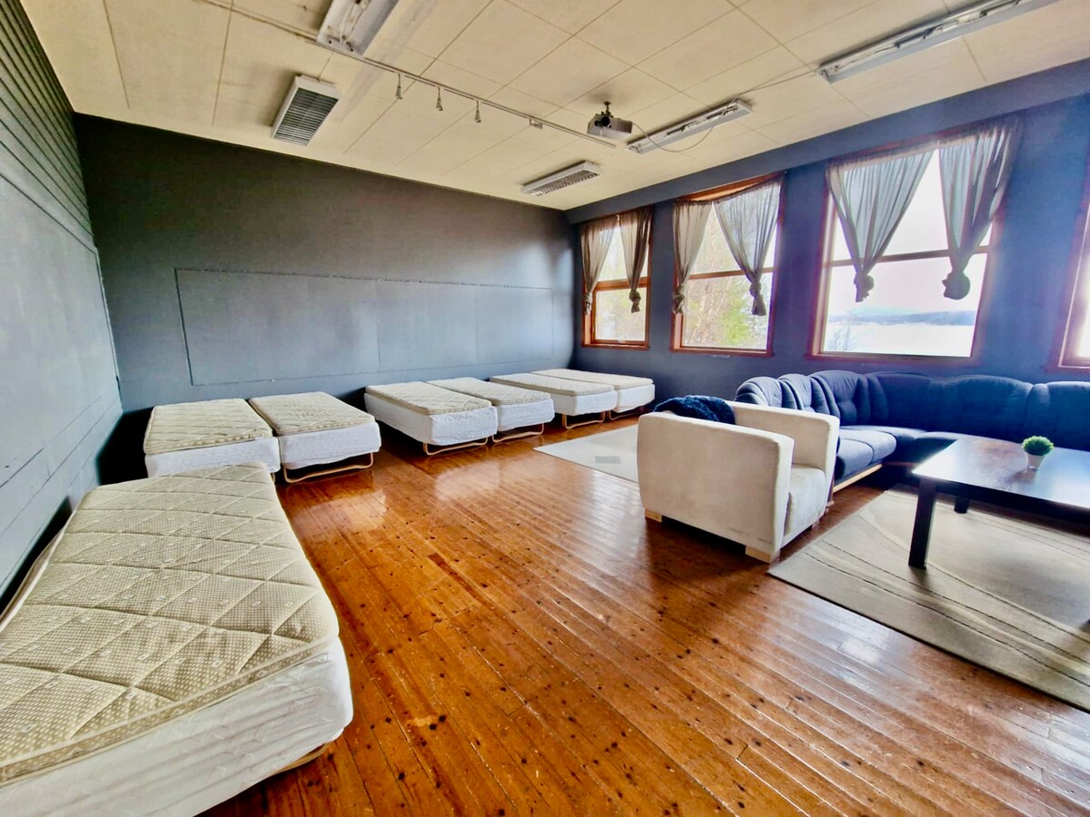 Dovedite cijelu porodicu ili radite u ovaj odličan smještaj sa mnogo prostora za zabavu. Pogodno za: - Porodično okupljanje - Lirskole - Kamp za obuku - Putovanje u brvnaru - Prostor za do 25 osoba. - U svakoj sobi se nalaze 2 velike spavaće sobe i približno 9 kreveta. Postoje 3 dvokrevetne spavaće sobe. - Postoji privatni fudbalski teren i privatna teretana. - Moguće je iznajmiti brod od komšije ili kompanije u blizini. - Nema naknade za pranje veša. Gosti sami peru sudove. Zapamtite: - Ponesite svoju posteljinu, čaršave i peškire.